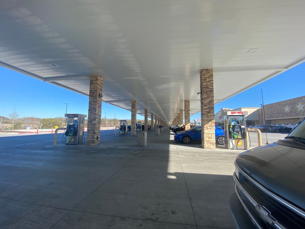 Buc-ee’s in Sevierville, TN is HUUUGE! 120 gas pumps and the “convenience” store is bigger than our local Walmart. Gas price $2.49