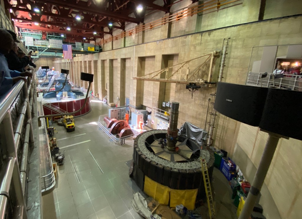 We took the tour of the hydroelectric power plant and saw a rare sight of one of the turbines out of its housing. (It was being repaired.)