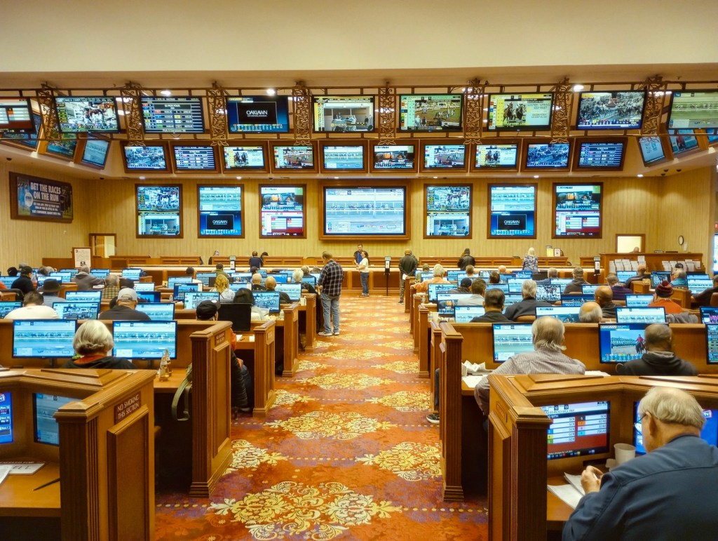 Saturday morning we left Lake Meade National Recreation Area and drove a little over 1/2 hour to Las Vegas. We had a room booked at a hotel/casino outside of The Strip. The South Point Casino is more our speed with a laid back “old Vegas” feel. It’s a quieter local crowd that frequents and has a dedicated Race Book (which is sadly and quickly being overtaken by professional sports betting in most casinos), a spa, a bowling alley, a horse arena (many horse competitions throughout the year!), 11 restaurants and a fabulous pool area. And… it was a super reasonable rate! I might be partial to this place though, as I won $400!