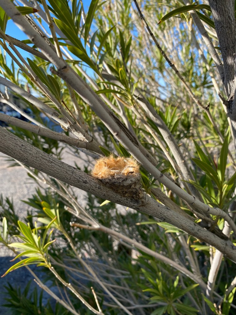 She is building a nest in one of the Oleander bushes dividing our RV space in the park. It’s been so amazing to watch her progress! Hoping to see some babies before we leave…❤️🪺