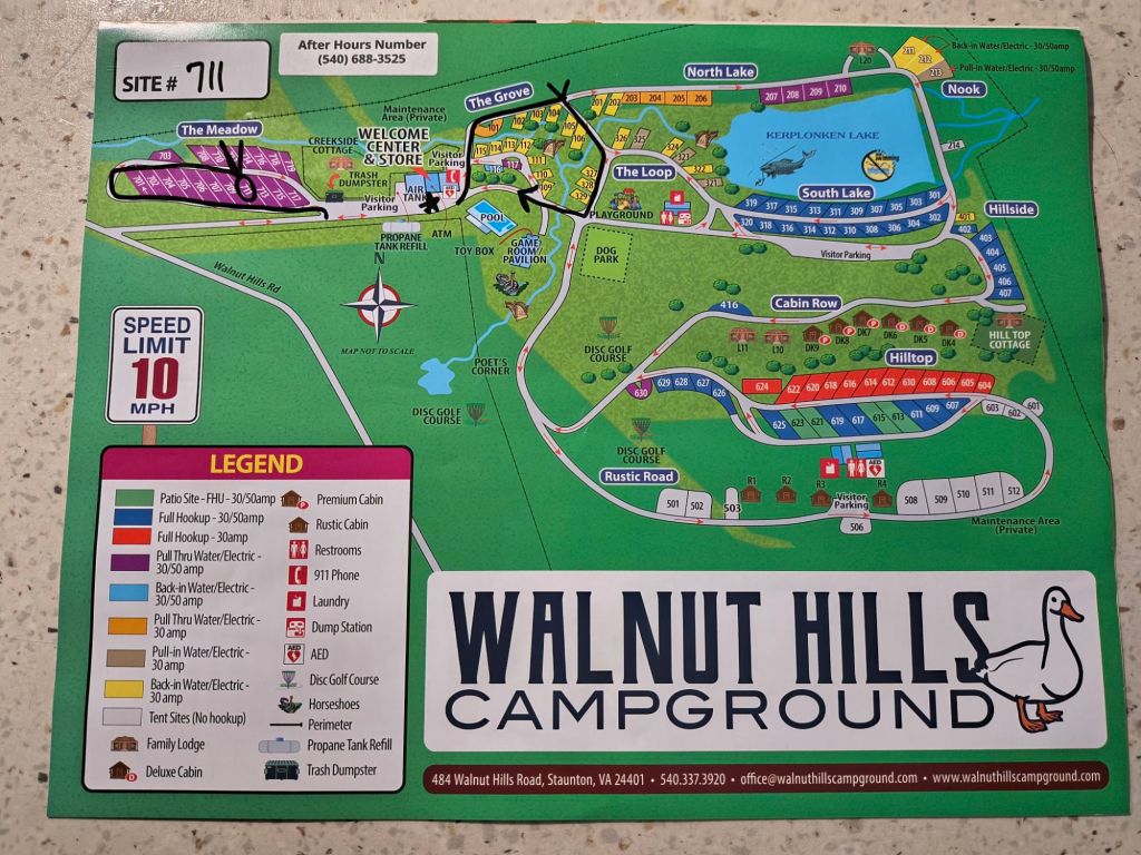 We stayed at a very nice park in Staunton, VA: Walnut Hills Campground and RV Park.